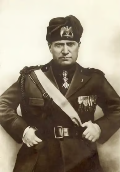 Benito Mussolini (1883) fue el líder fascista de Italia y uno de los principales impulsores de la Segunda Guerra Mundial, aliándose con la Alemania nazi. Estableció un régimen dictatorial caracterizado por el control absoluto del Estado, la supresión de la oposición y la militarización de la sociedad.